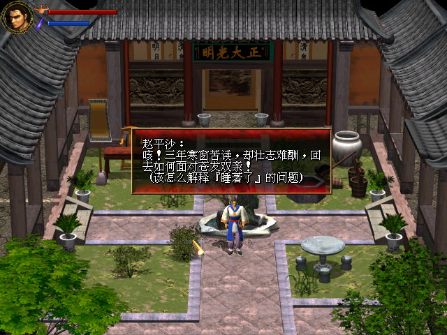 主线首先说的是主角赵平沙在做梦(开场动画加上刚进入游戏的动画),然后梦见自己与一名女子决斗,而且这个梦境已经很多次了。忽然听见外面有打斗的声音,便出门查看。出门发现原来是契丹大汉耶律才(耶律楚材?好像不是同一个年代的人吧?),两人对酒当歌,被辽国抛弃的耶律才打算第二天去投奔西夏。第二天主角便去考场考试了,不过考官在说明注意事项的时候,由于昨夜通宵饮酒,倦意来袭,便又做了个春梦。等梦醒了,考试也结束了。考官振振有词的说你都没有打点凭啥叫你起床?(话说赵平沙这寒窗苦读十几年,三年一次的考试都能睡着,大宋如果招了这样的官也是鱼肉百姓吧)郁郁不得志的赵平沙只能离开考场,打算在汴梁(今天的河南开封)集市逛逛之后,便离开此地。在集市闲逛的时候,发现有个人贩子卖一名西域楼兰姑娘,她长得很像是自己梦中出现的少女。于是赵平沙二话不说,花了100两银子要把女子买下,怎知,壮汉付周打算以250两银子强夺民女。赵平沙便上前理论,老板已经收下银两,但是秀才遇上兵,有理说不清,付周马上动起手来。一旁的义士郭忠诚看不惯,便帮赵平沙打倒了付周。(这里是游戏的第一场战斗,有教学)战斗结束后,付周觉得今天打架打得十分过瘾,便邀请两人一起去酒庄喝酒。喝酒过程中,赵平沙建议两人身手那么好,而北宋昏庸,不如去投奔西夏,两人随即应和。(这tm妥妥的卖国贼,跟二战时期中国人投奔日本有啥区别?)酒肉之后,女子把赵平沙扶回了房间,在说梦话期间,女子留了一张羊皮卷给赵平沙之后便离开了……