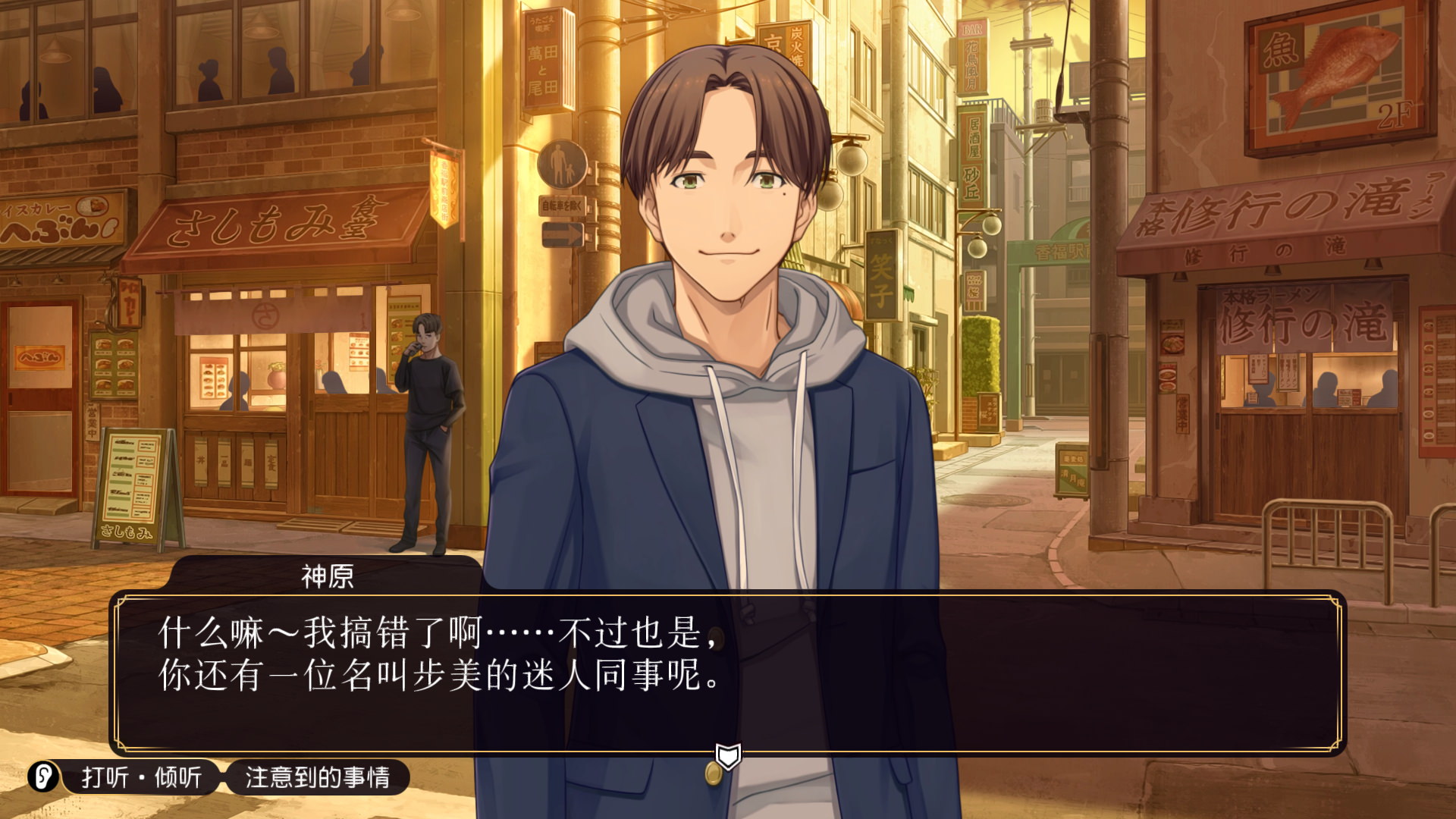 游戏的主要推进仍旧是跟前作一样,需要不断地对话。这种玩法在进入千禧年后基本就已经被日本AVG抛弃了。不过由于我的童年就是这样的玩法,所以我不但不讨厌,反而挺喜欢的。而且本作在对话的设计上,已经尽可能的优化了文本,不太可能出现卡关的情况。此外,也增加了推理的重要性,这点文末再细说。另外本次游戏也并非全是主角一人的视角进行,中间其实有插入很多步美的视角的剧情。不过很多剧情的设计只能说是在充数,比如几乎没有什么意义的出租车剧情。如果是出现在三十多年前,由于卡带容量限制,为了剧情的长度刻意去延长游戏时间还算好理解,在今天几乎没有太多限制的情况下还增加那么多滥竽充数的情节实在有点过分。
