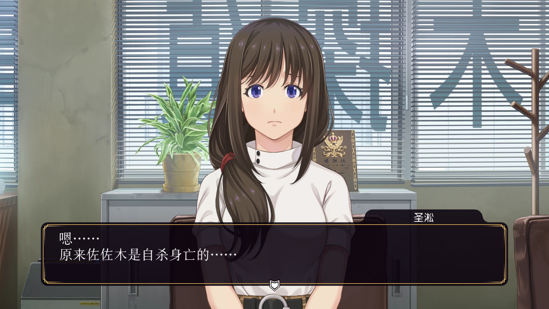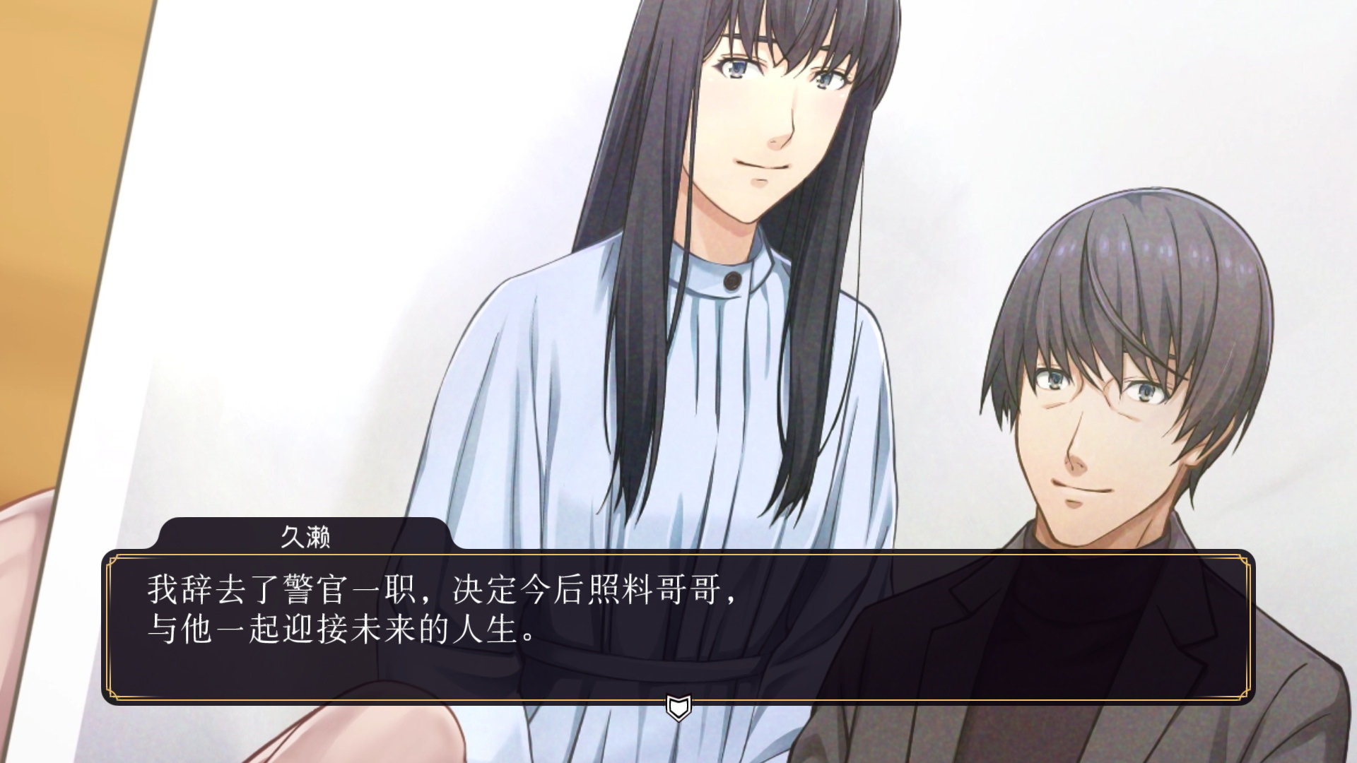 而游戏在这个进行中,其实有意识地引导女警的哥哥可能是整起案件的杀人凶手。这个引导非常地刻意,就像是前作站在身后的少女游戏中那面被校工封住的墙一样。不过,本游戏唯一让我意外的是,我明明感觉游戏还在最初的搜查阶段,一切的一切都是不明晰的情况下……游戏戛然而止了。