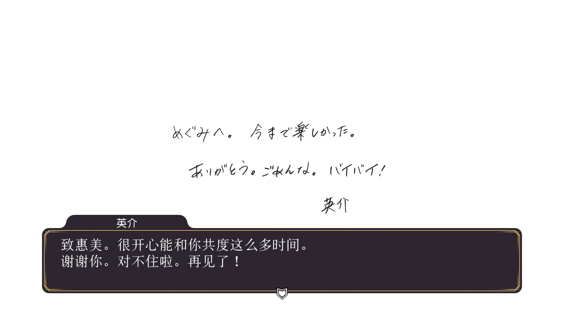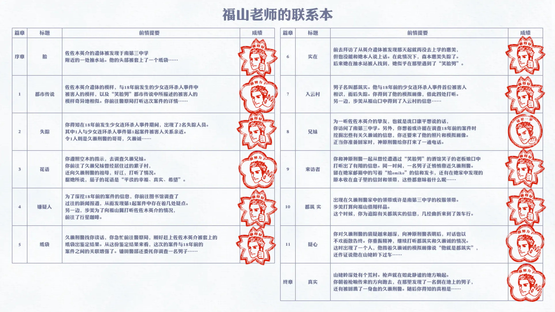 而在游戏最后,疑似是情敌的福山翼老师会对主角的表现做出评价,虽然不知道评判的标准是什么。不过这次只有玩家的点评和章节评价,没有前作与步美的相性匹配了。