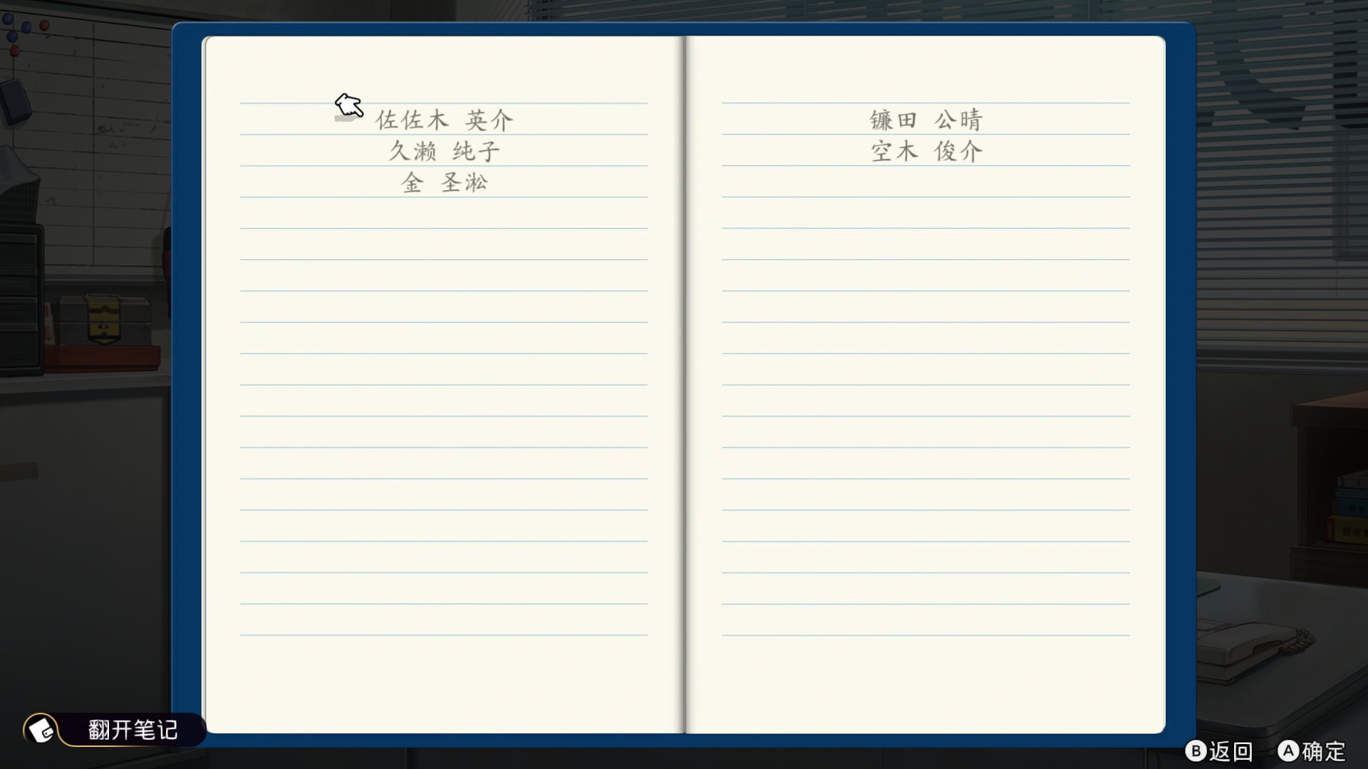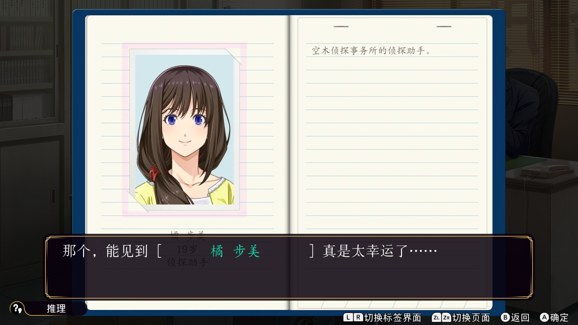 这里要特别提出一点的是,在前两作中,笔记是集成在系统菜单的,这样才可以随时调出查看。但是本作的笔记是集成在动作菜单的,这样平时在对话或者推理的时候,其实就不能特意调出笔记了。我个人觉得这算是一个负优化。