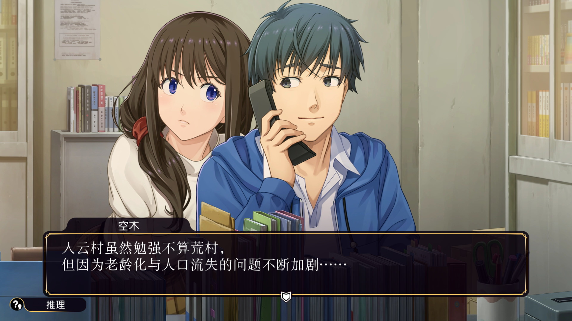 系统方面,前文已经有说比起前作在多方面都有所改良。特别要提出的其实是这个推理的部分。基本每一章节结束的时候都需要推理,而这个推理基本也就三四个小问题而已。玩家除了需要在单选题或者填空题的形式做出正确选择之外,还有一个就是从笔记的划线处选择正确答案。虽然主角每天过得都很无聊,对于案件有帮助的情节不多,但是这在一定程度上还是增加了玩家的参与感的。