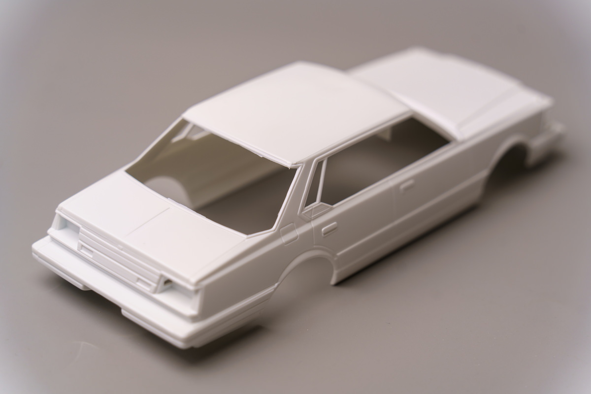 本模型实际上是属于青岛社Grand Champion系列的第六款模型,售价2800元,于2009年十月上旬上市。这个系列基本都是HellaFlush风格,包围非常夸张,底盘非常低的豪华轿车。在成品效果上,与素车的差距还是比较大的。不过青岛社的一些板件历史都较为久远,本模型的历史可以追溯至1984年。