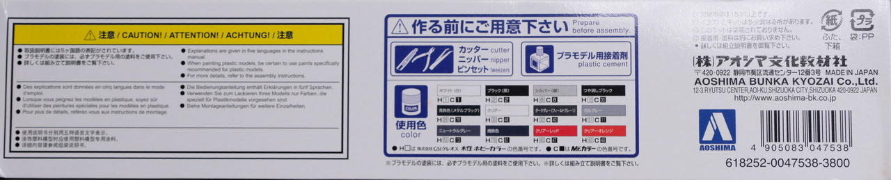 模型定价为3800日元,算是那时候的一个标准定价。也差不多是当年最贵的定价了,毕竟其中2000日元其实是水贴的价格。不过青岛社的痛车设计一般还算不错。从侧方封面可以得知一系列基础信息。至于值不值得,看个人吧,毕竟这系列基本都属于是把旧板件重新包装翻倍卖。如果对于痛车不感兴趣的,在接近2020年左右,青岛社的旧模几乎全方位都开始附带切割遮盖带,制作起来会更加方便一些。价格只比当初贵200日元左右。