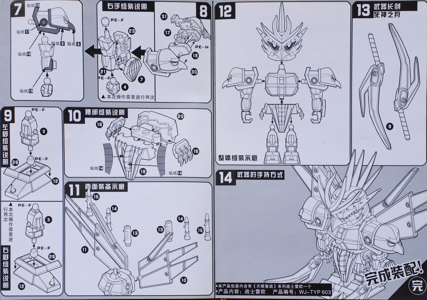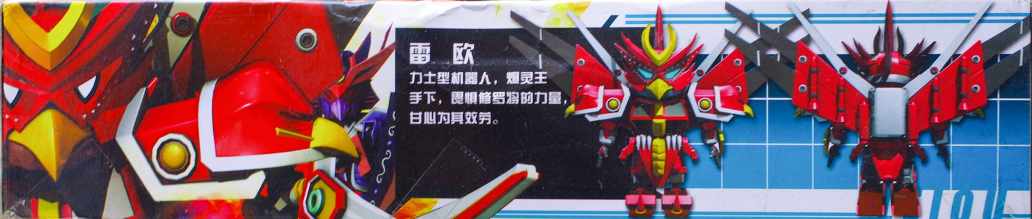 模型的说明书印刷还算精美,上面有所有角色的line-up。分别是阿诺、罗刹女、雷欧、乌尔奇、双枪将、普林、普利、爆灵王、修罗将、修罗将(特别进化版)、轰天雷、幻魔、闪电侠,一共十三款模型。由于我手头这盒雷欧的货号是603,刚好排列的是第三款,其他的货号大致可以以此类推。