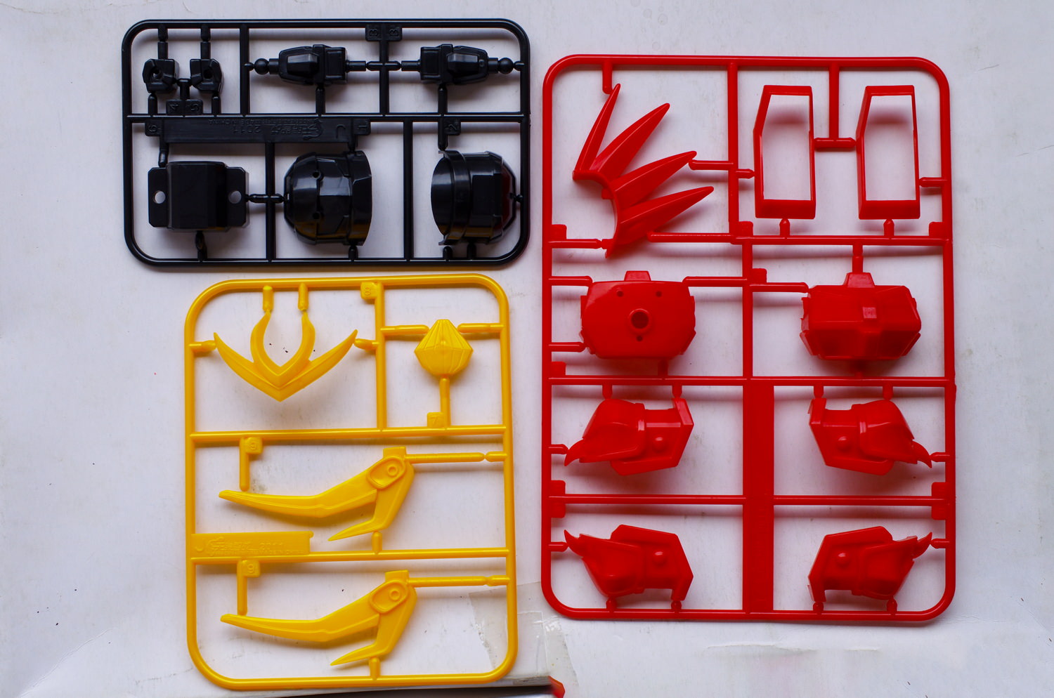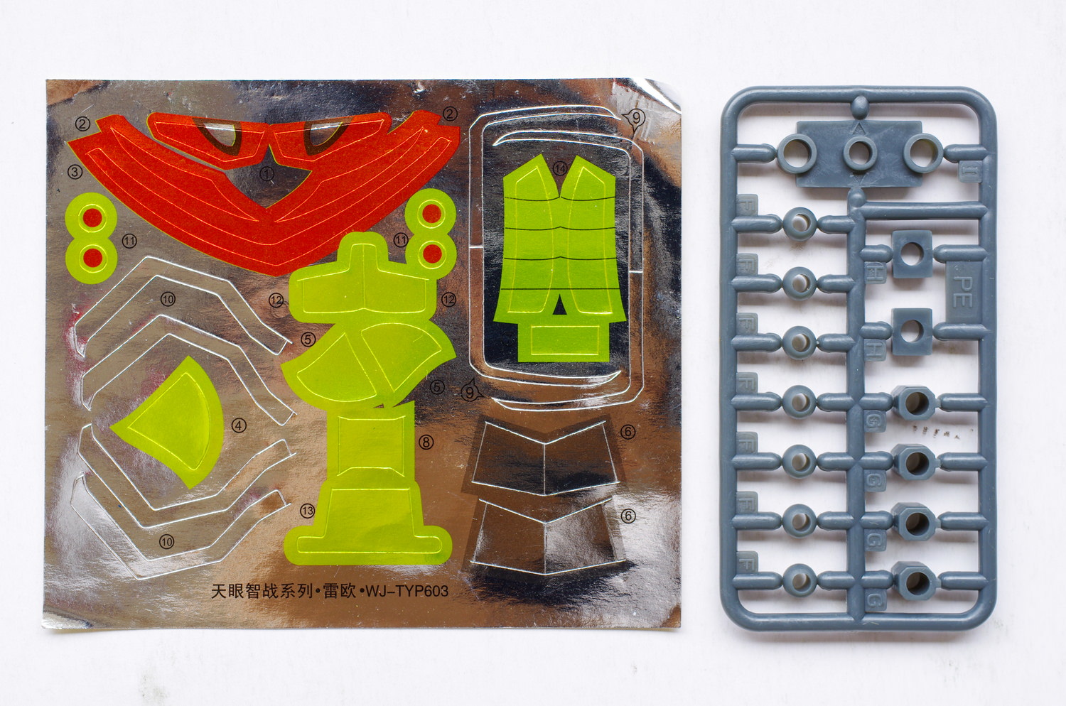 模型一共由五块板件,加上一版PC连接件合贴纸构成。整体的风格非常类似SD系列,是有快拆设计的。由于图片已经是多年前所拍摄的,所以已经忘记其具体素质如何,各位请自行查看图片。虽然板件油光发亮,细节不清晰,但相对于当年常见的山寨版SD而言,它的品质其实是要稍微好上一些的。